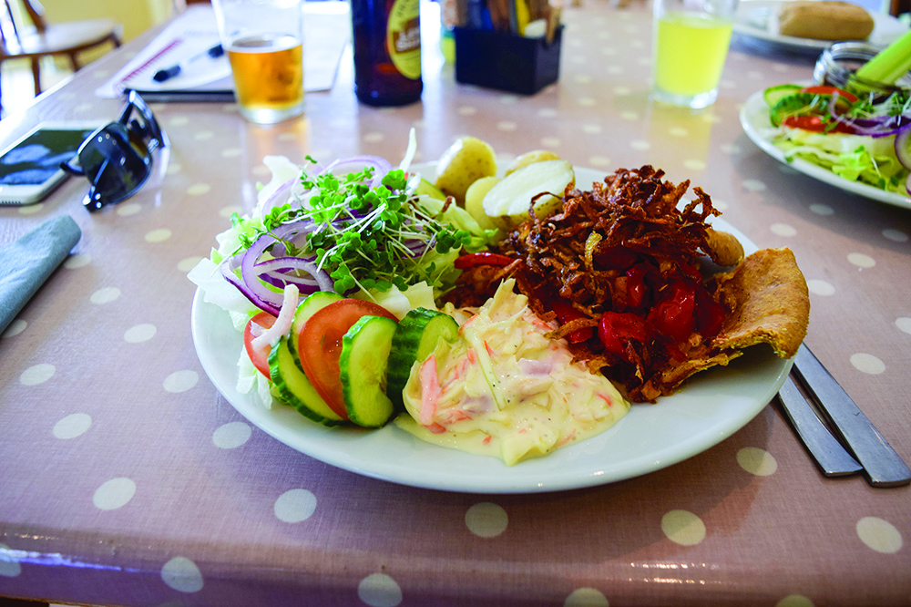 The sansevieria is better known as a mother-in-law’s tongue. The one Susan and myself purchased from Southwell Garden Centre, on a warm mid-week afternoon at the beginning of September, is a fine looking specimen… and the red pepper tart was delicious. At home Susan looks after the house plants, bar one: the multi stemmed miniature olive that was my responsibility and had adorned a gloomy corner close to my desk. Note the past tense. I’d neglected it for many years and, like the famous Monty Python Norwegian Blue parrot, it ceased to exist and was bereft of life! So, on a warm early afternoon, mid-week, we set off on a leisurely drive through the Dukeries for a replacement house plant and a casual lunch. However, the Tour of Britain cycle race had decided to use the same roads, on the same day for their Sherwood Forest to Newark-on-Trent stage. As roads on our route were temporally closed we caught site of a multi-coloured blur that was the cycle races’s peloton; several dozen, fit, lycra clad individuals moving faster through the picturesque Nottinghamshire countryside on two wheels than I’d dare do on four. They were followed by cohorts of amateur cyclists. Many of them heading to our destination: the bike friendly Southwell Garden Centre and tea rooms. The family run garden centre is on the outskirts of Southwell and easy to find. It has the feel of a nursery. Plants, containers and compost taking centre stage. We spent some time wandering through the outdoor plants before the thought of lunch got the better of us and we made our way to the tea room. There is extensive outdoor seating and on this warm (Tour of Britain) afternoon it had attracted a lot of cyclists enjoying an al fresco lunch. And they can keep an eye on their bike in the purpose built cycle rack. We selected a couple of drinks: a chilled, citrus flavoured water for Susan and bottle of Fentimans lemon shandy for myself, and drank these as we chatted to Dan, one of the co-owners, and Sheryl. Dan is responsible for the savoury side of the menu; often beginning his baking at 6am. Sheryl bakes the cakes and puddings, a vast array of which greet you from behind a chilled display cabinet as you enter the tea room. Wherever possible they use local ingredients. And North Nottinghamshire isn’t short of excellent market gardeners and butchers. For my lunch I decided to try one of Dan’s open, savoury tarts from the specials board: roasted red pepper, tomato and brie. A slice of shortcrust pastry tart stuffed with a soft, tangy brie under a thick layer of roasted tomato and red pepper. All topped with a stack of crispy, deep fried potato strings was the main attraction. The pastry was light and crumbly and the peppers added a note of sweetness that enhanced the tomato flavour. It was accompanied by a fresh crispy salad of lettuce, tomato, cucumber, red onion and cress. A helping of warm new potatoes and a mound of creamy coleslaw completed the ensemble. Susan made her selection from the ordinary lunch menu: a ploughman’s. It had two wedges of tangy cheese filling a quarter of the plate. It had the same generous salad but instead of the coleslaw there was a pot of Branston pickle and two batons of celery to scoop it up with along with a choice of white or wholemeal roll. The lunch time menu ranges from home made soups and sandwiches through to battered haddock and chips. There’s a soup and sandwich combo; a sort of mix and match. For the cooler days there are toasties, jacket potatoes and a Growler that consists of ham, chips and cheese in a soft bap. On the day we were there the tea room had around eight specials available for lunch. Loaded fries with pulled pork or southern fried chicken. A cheese, tomato and onion quiche, a broccoli and Stilton quiche or a bacon and cheese quiche; both with salad. Southern fried chicken burger with chips. Smoked haddock and mozzarella fishcakes. Pan fried plaice with lemon and mashed potatoes. They open at 9am when the breakfast menu is available. There’s toast with various toppings. Breakfast cobs with fillings ranging from just egg to bacon, sausage and egg. And a full English they call The Works with all the usual suspects. Sunday lunch is very popular at the garden centre. Dan tries to include at least two crowd pleasers: his steak and ale pie and the rich flavour and beautifully tender texture of a slow cooked roast brisket. Booking is advisable. And to finish there’s a large selection of pies, puddings and cakes. Large, traditional fruit filled pies ready to be sliced. Crumbles ready to be scooped. Chocolate and coconut coated, generously proportioned individual cookies and brownies ready to be nibbled. A lemon meringue begging to be eaten. And a Fairtrade coffee to linger over. A large, old fashioned, deep filled, egg custard attracted my attention. Dusted with nutmeg, pale golden on the top, and just the merest tremor in the centre when Sheryl moved the dish. It made my mouth water and was something to bear in mind for the next time we visit. 00