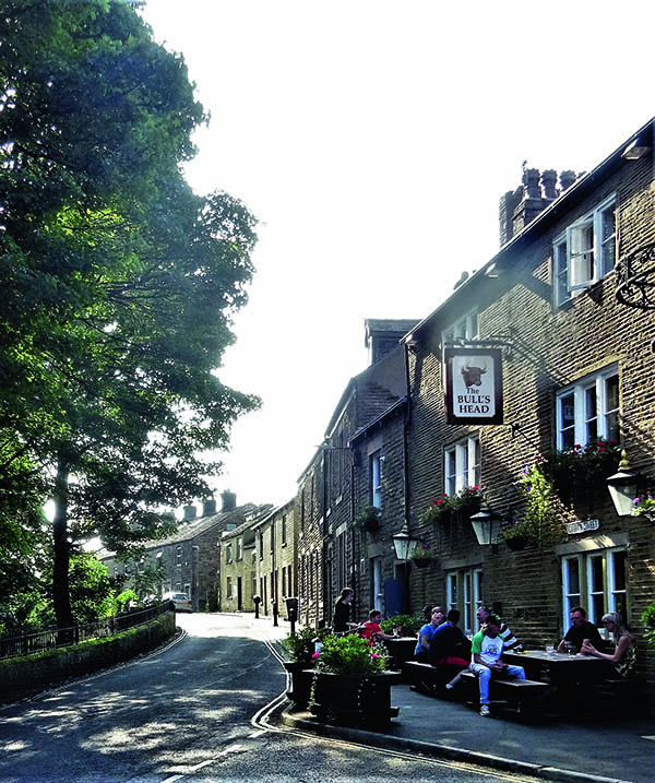 Looking (and walking) up the street, provided us with a classic view, the village’s more pretentious houses being on the east side, including a particularly fine double gabled house (No. 36) just below the corner of Well Gate and a slightly earlier simpler one adjacent. Reaching the top, we could enjoy the raised pavement and 18th century cottages of the part of Church Street above the parish church and before us, the welcoming sight of the Wheatsheaf inn (18th or early 19th century) and, to its left on Church Street, corner of Dunne Lane, the Bull’s Head (late 17th century). Spoilt for choice, we walked around behind the two inns, via Dunne Lane, Blackshaw Road, and the more picturesque Thorpe Street, bringing us back along the raised pavement to seek further refreshment in the Bull’s Head – very pleasant indeed with actual rooms, as inns should be, not gutted to take CCTV surveillance.