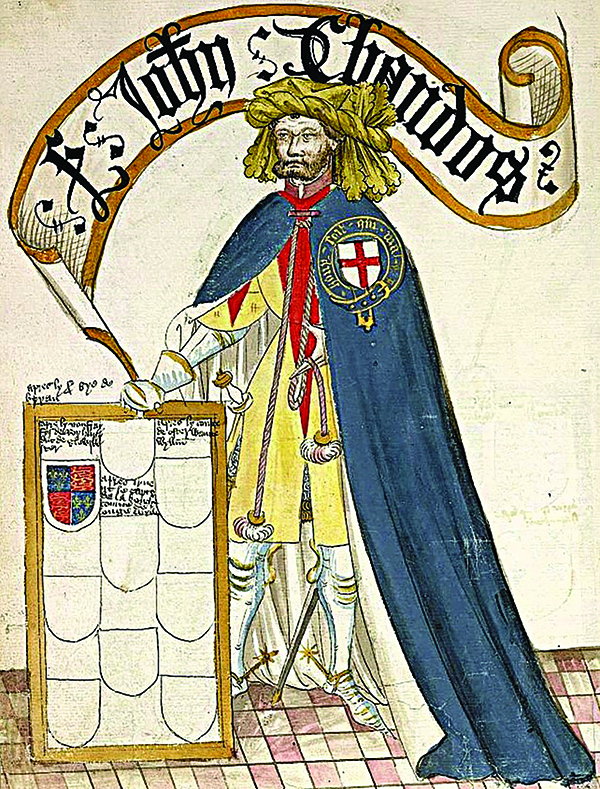 Described by the medieval historian Froissart as ‘wise and full of devices’, as a military strategist, Chandos is believed to have been the mastermind behind three of the most important English victories of the Hundred Years War. He was chief of staff to the Black Prince at the Battle of Crécy in 1346, was a leading commander a decade later at the Battle of Poitiers and also in the Battle of Auray, in the War of the Breton Succession in 1364, following which his commander, John Duke of Montfort, was able to succeeded as John IV, Duke of Brittany. In addition to his other honours, Chandos was created the lieutenant of France and vice-chamberlain of England.