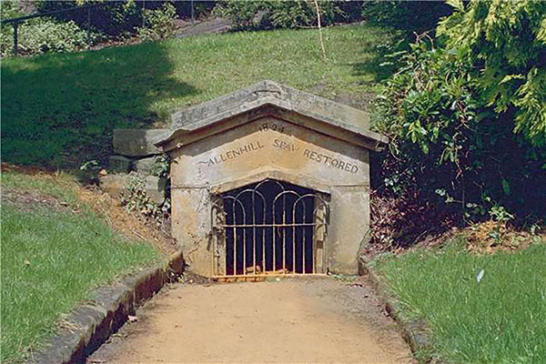 The estate was reportedly modest, about 800 acres, and the land, which seems to have taken its name from an unrecorded family called Alleyne (to give the earliest recorded spelling, which was how most Allens were spelt prior to the Early Modern period) was originally part of the once extensive estate of the Wendesley family of Wendesley, who, we must presume, inherited it from a branch of the White Peak Alleynes, who had given it their name. The hill itself, called The Dimple had lead mines within it, and at the foot a small spa was later opened on the family’s land. The well head survives, listed grade II and was restored by Adam Wolley in 1821.