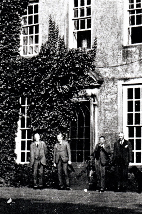Glapwell Hall: the old (west) entrance with William Jackson and three friends, c.1930.