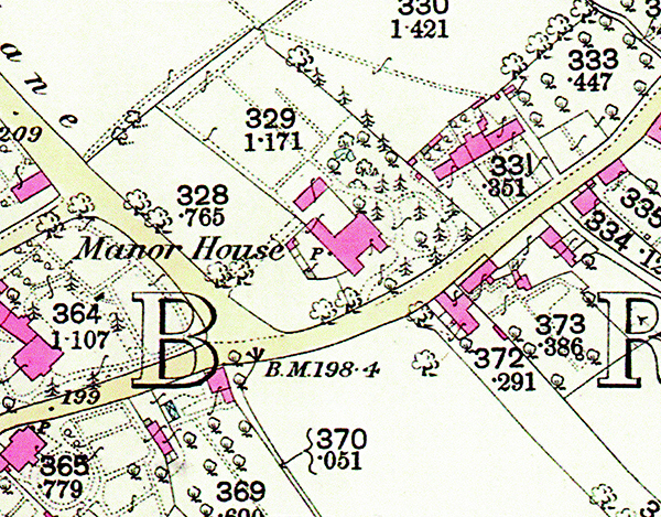 The purchasers of the land on which stood the original manor house (and three shares of the manorial rights) were the Piggens, They almost certainly built the first residential capital mansion on the site – although whether their new house actually stood on the ancient site is impossible to tell – and a timber box-framed wing remained embedded in the fabric until the house was eventually demolished dated from this mid-Tudor period. The site was on the NE angle of the junction between Church Lane, The Riddings and Bare Lane, 150 yards due north of the church, a proximity that might suggest that it was indeed built on the ancient manorial site.