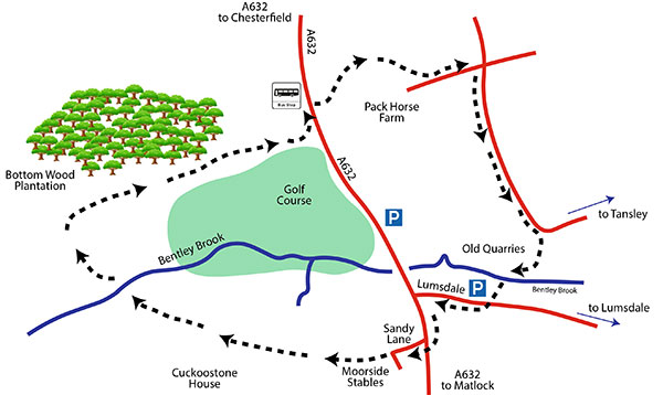 Car Parking: Roadside opposite Highfields School on Lumsdale Road, or layby opposite Matlock Golf Club.
