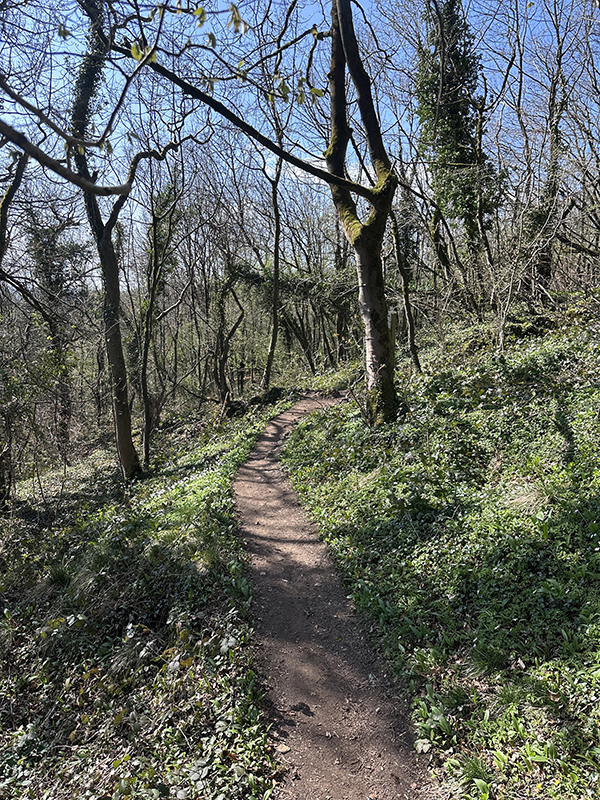 Before you get to the cattle grid we go right. Head through the gate into the woodland. Hopefully the bluebells will all be out when you are here.